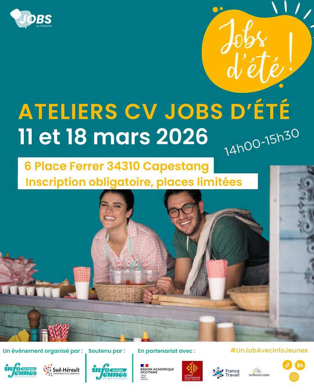 Info Jeunes Sud-Hérault organise des ateliers de préparation au CV pour t’aider à mettre toutes les chances de ton côté pour les jobs d’été !